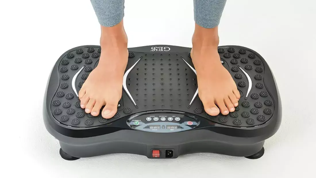 Платформа, вибрирующая с частотой 30–50 Гц. Встаёшь, делаешь присед или упор — и получаешь микро-шок мышцам.