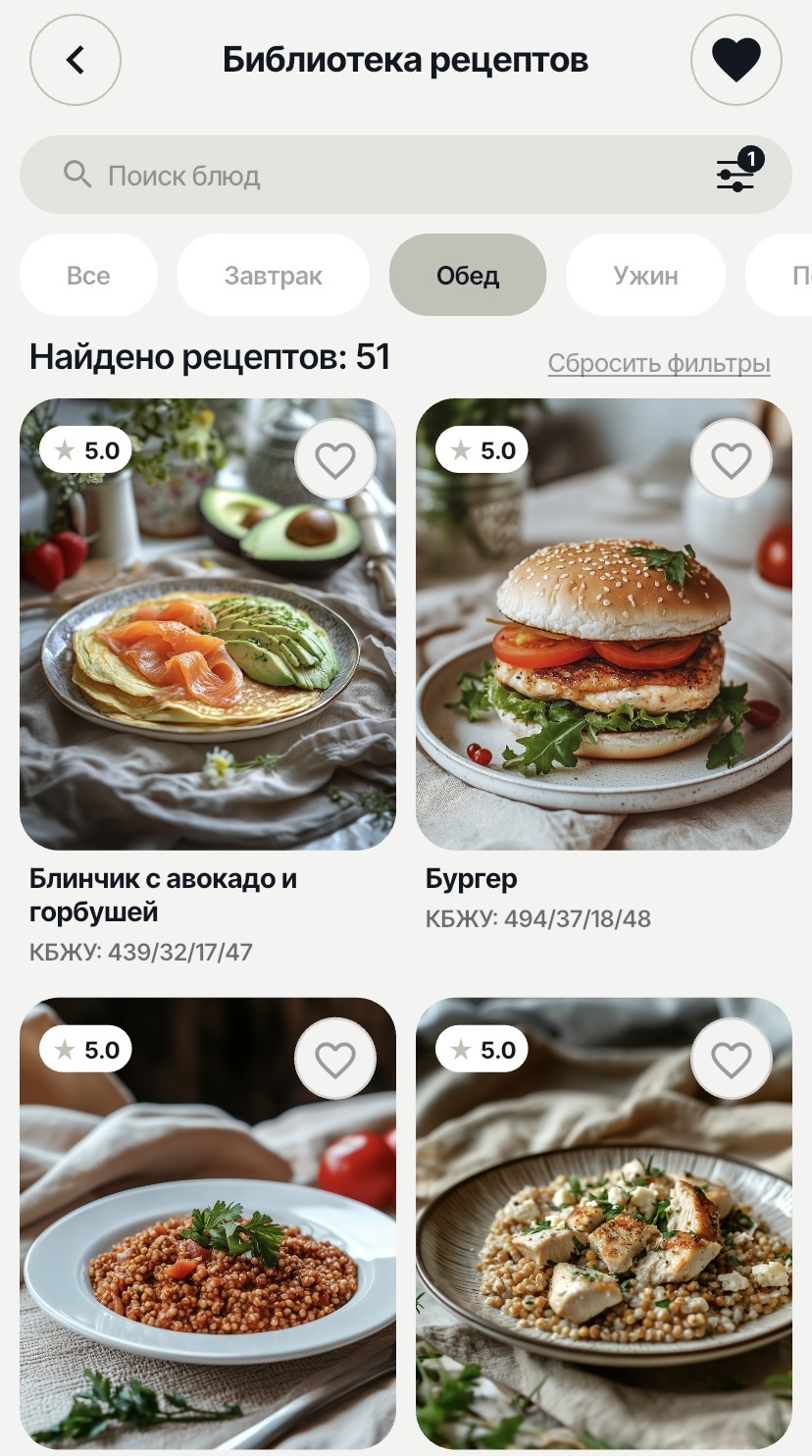 Блюда можно сортировать по содержанию белка/ сложных углеводов/ жиров. Это поможет сделать ваш рацион сбалансированным и вкусным даже без употребления добавок.
